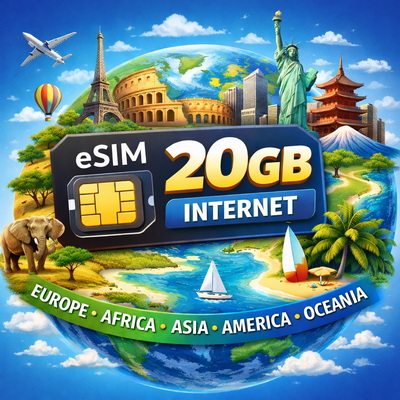 Global eSIM — Your all-in-one global internet solution for 80+ countries, now with 20 GB of mobile data and 15 minutes of calls. Prepaid eSIM with instant QR activation, no physical SIM, no contracts, no roaming charges.