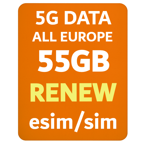 Renew 55GB internet for Europe 20.00 € – 60.00 €
